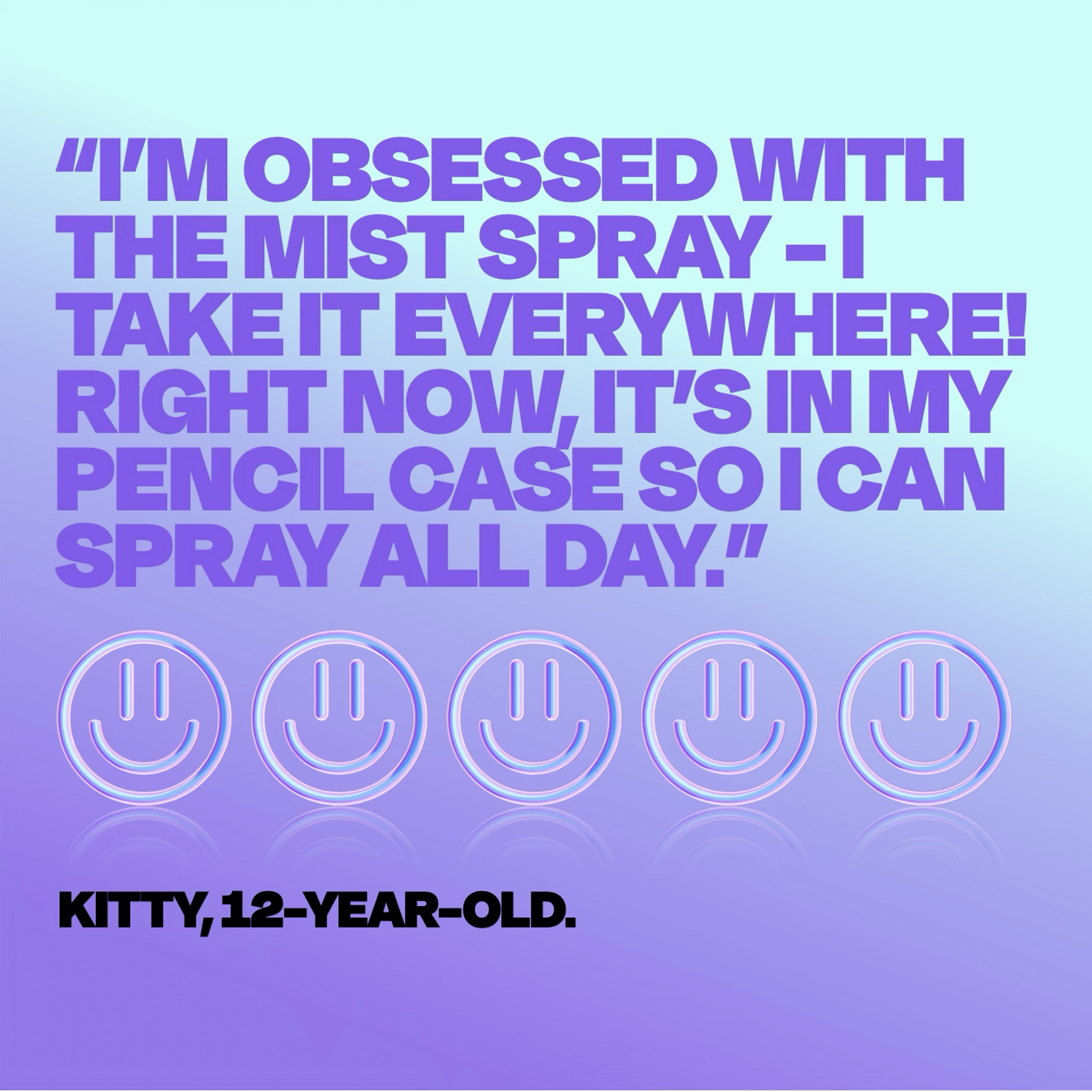 Glow anytime, anywhere. Mist GlowUp! is your skin’s instant refresh and glow! Formulated especially for tweens and teens. This super-fine facial mist is powered by Neroli Water, Glycerin, and Pentylene Glycol to tone, hydrate, and restore balance with every spritz.